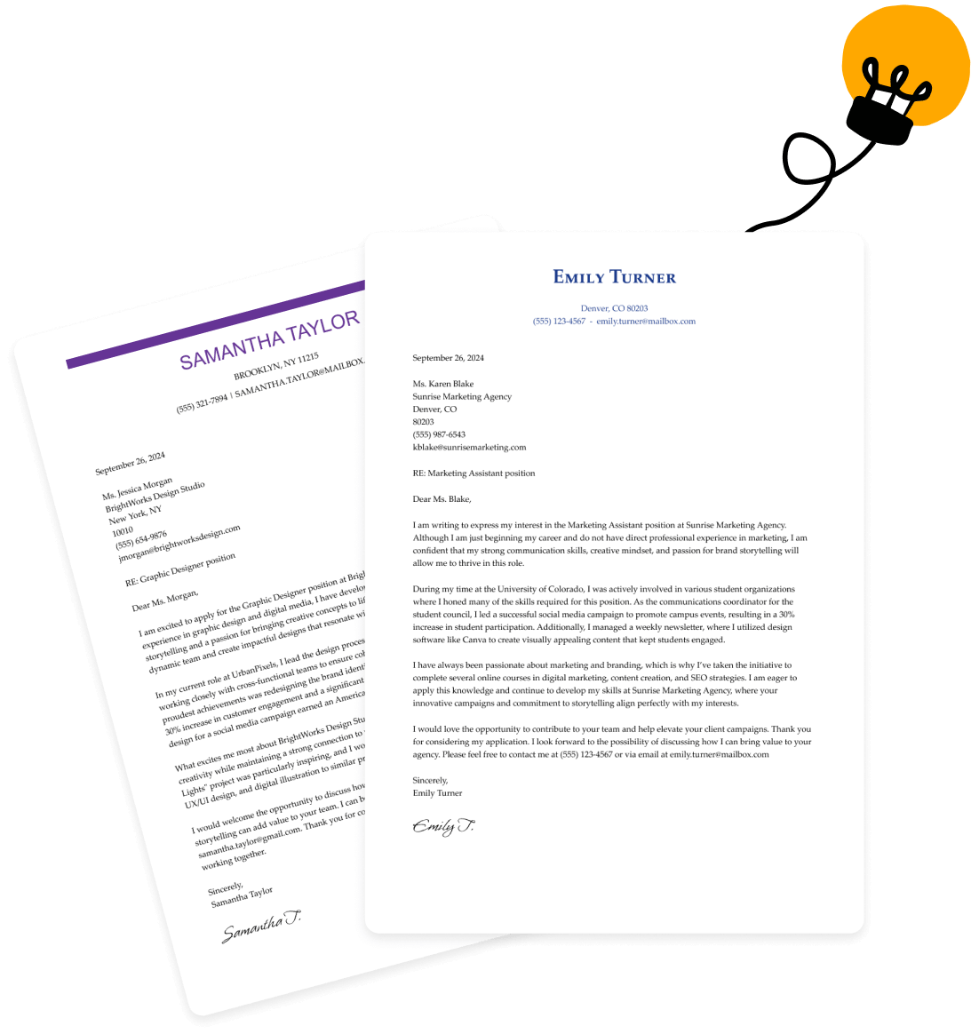 - High-quality cover letter samples tailored to different professions and unique situations.
